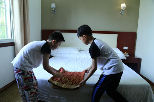 為了培養(yǎng)學(xué)員們的吃苦耐勞精神,引導(dǎo)他們養(yǎng)成良好的生活習(xí)慣,在老師們的“部署”下,孩子們上了特殊的第一課——內(nèi)務(wù)整理。