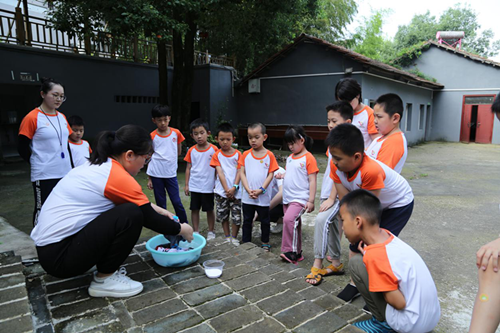 早操后,大家偶然間發(fā)現(xiàn)了一棵千年老樹。對著大樹,大家合起雙手,許下虔誠的愿望。陽光沿著綠葉的縫隙,灑下點點光斑,映著孩子們的臉龐,美好得恰如他們純真的心。