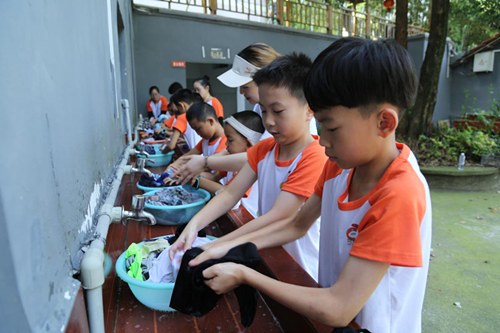 每日的訓(xùn)練,汗流浹背,一場訓(xùn)練下來,全身幾乎都是濕透的,回到房間后,脫下濕漉漉的訓(xùn)練服和臭襪子,不是隨手扔到一邊就完事了。在老師們的引導(dǎo)下,讓每個孩子都學(xué)會自己動手洗衣服,從小培養(yǎng)孩子的獨立自主意識。