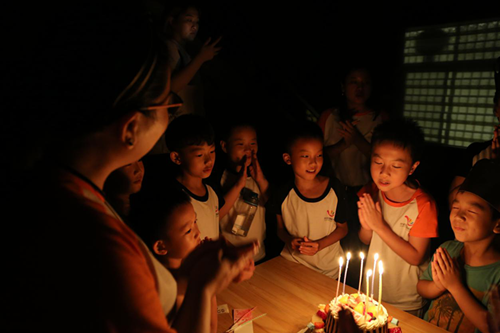 晚上的彩蛋時刻——學(xué)習(xí)營歡樂有愛的慶生活動,饒毓景小朋友和菲菲老師一起過生日,大家為兩個壽星們準(zhǔn)備了surprise! 所有老師和小朋友在燭光中齊唱生日歌,分享著甜蜜的蛋糕,愿你們開心快樂,幸福成長。