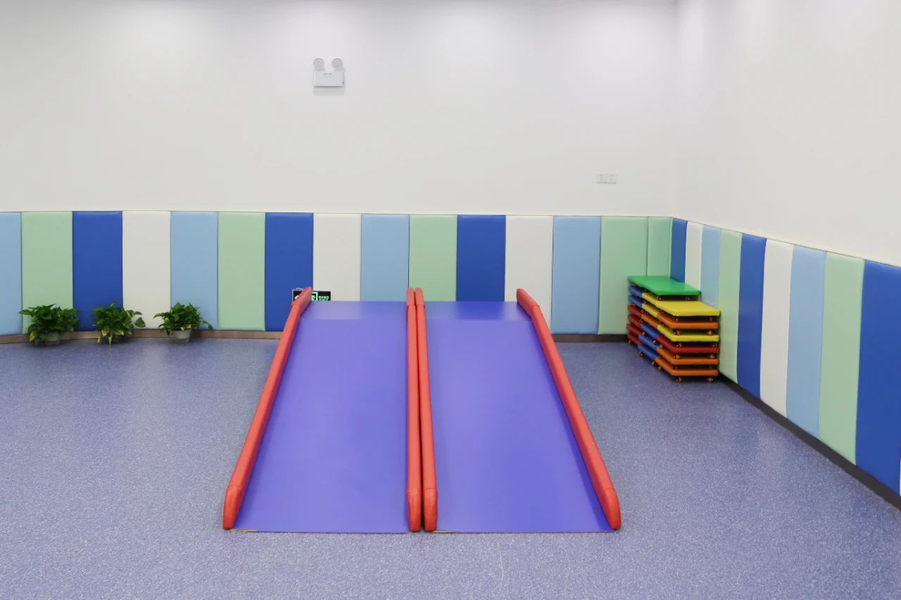 “滑梯滑道的長度不得低于12米,一定要保障孩子滑行的安全?!?/p> “感統(tǒng)訓(xùn)練室必須要有三個大分區(qū),區(qū)域功能是不一樣的?!?br /> “運動訓(xùn)練區(qū)域的墻體軟包是需要全覆蓋的……” 今年在原有的訓(xùn)練教具基礎(chǔ)上,新增了前庭訓(xùn)練器、體能梯、接球器、平衡跳躍球和全能跳躍凳等教具,激發(fā)孩子參與訓(xùn)練的興趣,用新的方式來訓(xùn)練孩子的前庭覺和本體覺。