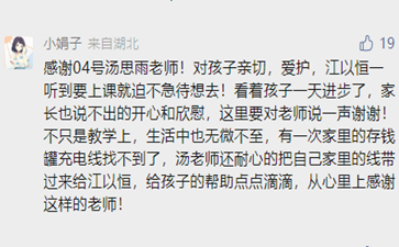 在后臺(tái)留言中,家長們對(duì)王老師評(píng)價(jià)最多的就是:溫柔耐心、認(rèn)真負(fù)責(zé)。