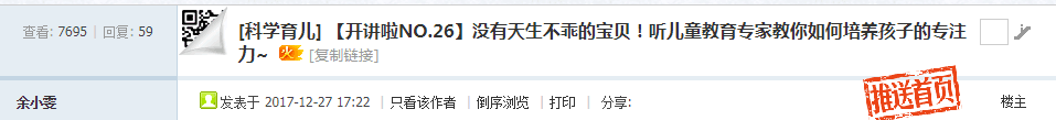 1月11日,得意生活邀請優(yōu)佳加智能教育開展【得意微課堂】,討論如何培養(yǎng)孩子的專注力。在12月27日話題一發(fā)出,得意生活的寶爸寶媽們就積極參與,瀏覽將近八千次。