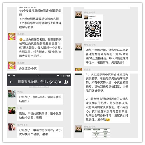 最后是優(yōu)佳加小優(yōu)發(fā)福利:為了感謝各位的熱情參與,優(yōu)佳加智能教育將為參加此次微課堂意的粉們友情提供:10個專業(yè)兒童感統(tǒng)測評+解讀的名額、5個兒童感統(tǒng)訓(xùn)練課現(xiàn)場體驗(yàn)的名額、1個家庭感統(tǒng)訓(xùn)練全套線上直播課程學(xué)習(xí)名額。寶爸寶媽們的熱情參與,更是忙壞了小優(yōu)。統(tǒng)計(jì)結(jié)束后,小優(yōu)迅速公布了獲獎的名單,也和中獎的寶爸寶媽們聯(lián)系并確定。這次的微課堂也感謝各位的家長積極報(bào)名,課堂上積極發(fā)言參與。優(yōu)佳加智能教育在今后也會更多和得意生活展開深度合作,也希望能夠幫助寶爸寶媽,在育兒的道路上有更多的交流。